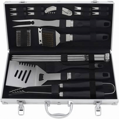THE MOST COMPLETE KIT – The BBQ Accessories set includes BBQ Spatula, fork, basting brush, BBQ cleaning brush, extra grill brush head, tongs, corn holders, BBQ skewers, multipurpose corkscrew, and aluminum case. This high quality set comes with everything needed for a successful cook out.